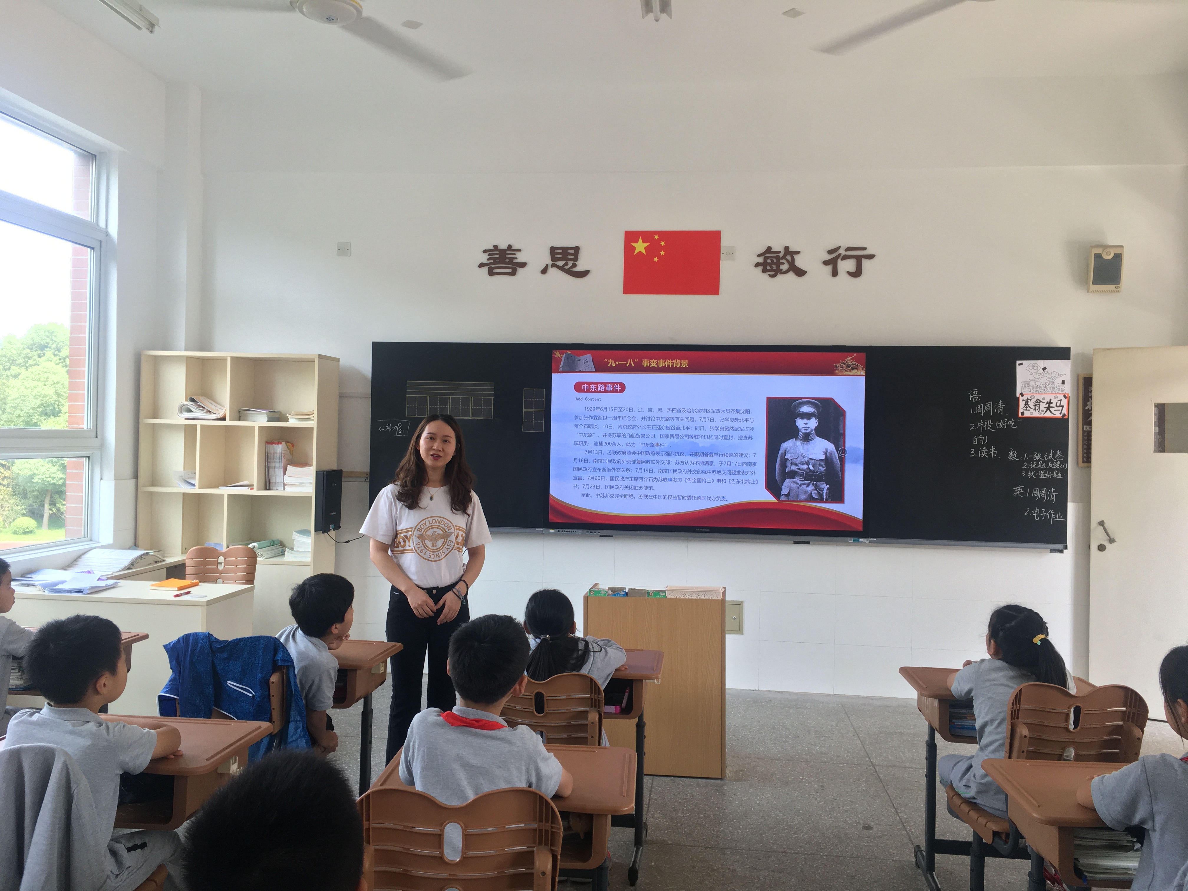 下午全校各班进开展了相关的主题班会课,班主任老师带领同学们再一次回顾了“九一八”事变爆发及抗日战争给中华民族带来的深重灾难,进一步增强了学生们对“九一八事变”这一历史事件的深刻认识,教育学生们要铭记历史、不忘国耻、珍惜和平、心怀祖国,用自己的实际行动去实现中华民族伟大复兴的“中国梦”!