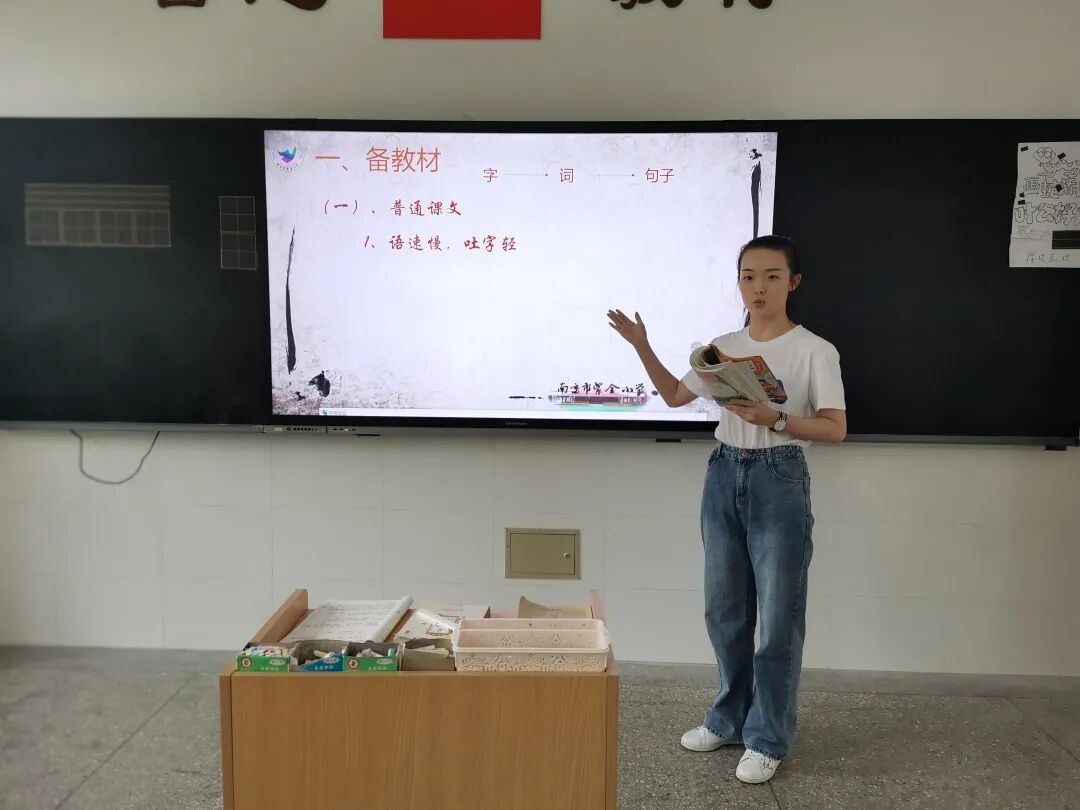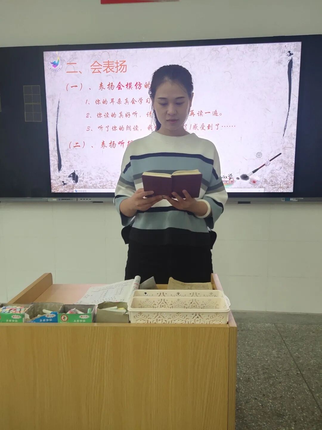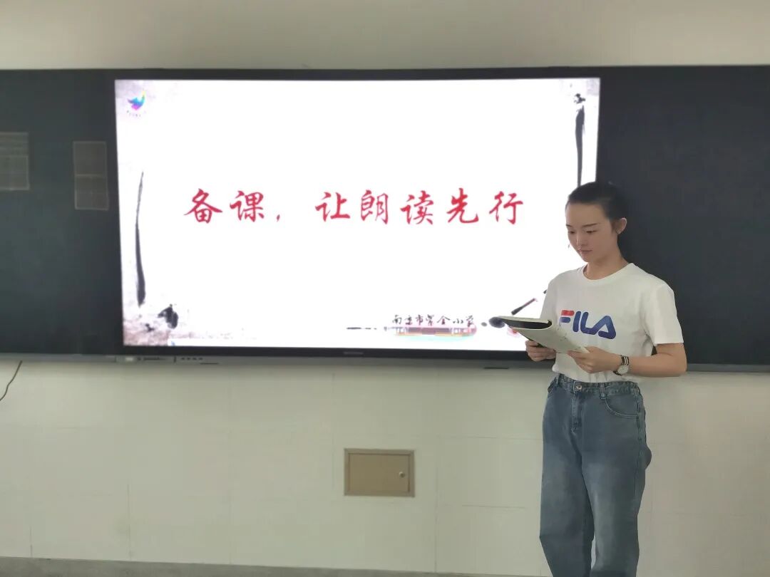 秋风起兮白云飞,草木黄落兮雁南归。在这秋意渐浓之时,紫金小学语文组全体教师齐聚一堂,共同参与本周语文组集体备课。语文组本次集体备课的主题是“备课,让朗读先行”,今天由陈莹老师为大家带来朗读指导训练分享。 活动开始,陈莹老师以《语文课程标准》为出发点,她向大家阐述了“朗读能发展学生的思维,激发学生的情趣,学生的朗读能力逐步提高,对课文内容的理解就会逐步加深”这一观点。为此,语文老师要在语文教学过程中做到“以读促思”“以读促悟”。语文老师要备好朗读,总体要遵循由“字—词—句”的顺序循序渐进。她建议语文老师首先将教材按照精读文章、诗歌、韵文等不同题材进行分类。其次,她强调在读诗歌时要注意读满每句的最后一个字,读慢每首最后三个字。此外,语文老师要备好朗读,还要学会表扬,尤其表扬会模仿和认真听的小朋友。 陈老师分享之余,王芳校长结合今天的主题请在座的语文老师分享各自在朗读教学中存在的问题及困惑。从六年级的张丽老师开始,每一位语文老师都分享了自己的看法,王芳校长也为大家一一答疑解惑,大家研讨的气氛愈加浓厚。为了将朗读指导落到实处,更好地提升语文老师的朗读技能,王校请各位语文老师上台为大家现场展示朗读,她们或注重轻重缓急,或注重示范模仿,或注重想象留白,各有所长。 1 2 3 4 5 6 朗读是阅读的起点,是理解课文的重要手段,更是小学语文阶段听说读写能力训练十分重视的基本功之一。语文老师只有在课前认真备好朗读,才能引导孩子在从小养成良好的读书习惯。相信通过本次朗读指导的专题分享,紫金小学的语文老师们会更加关注学生的朗读,更加精准地把握学生朗读训练的重点,更加合理地安排朗读训练的步骤,让紫金小学语文朗读教学落到实处,更上一层楼!