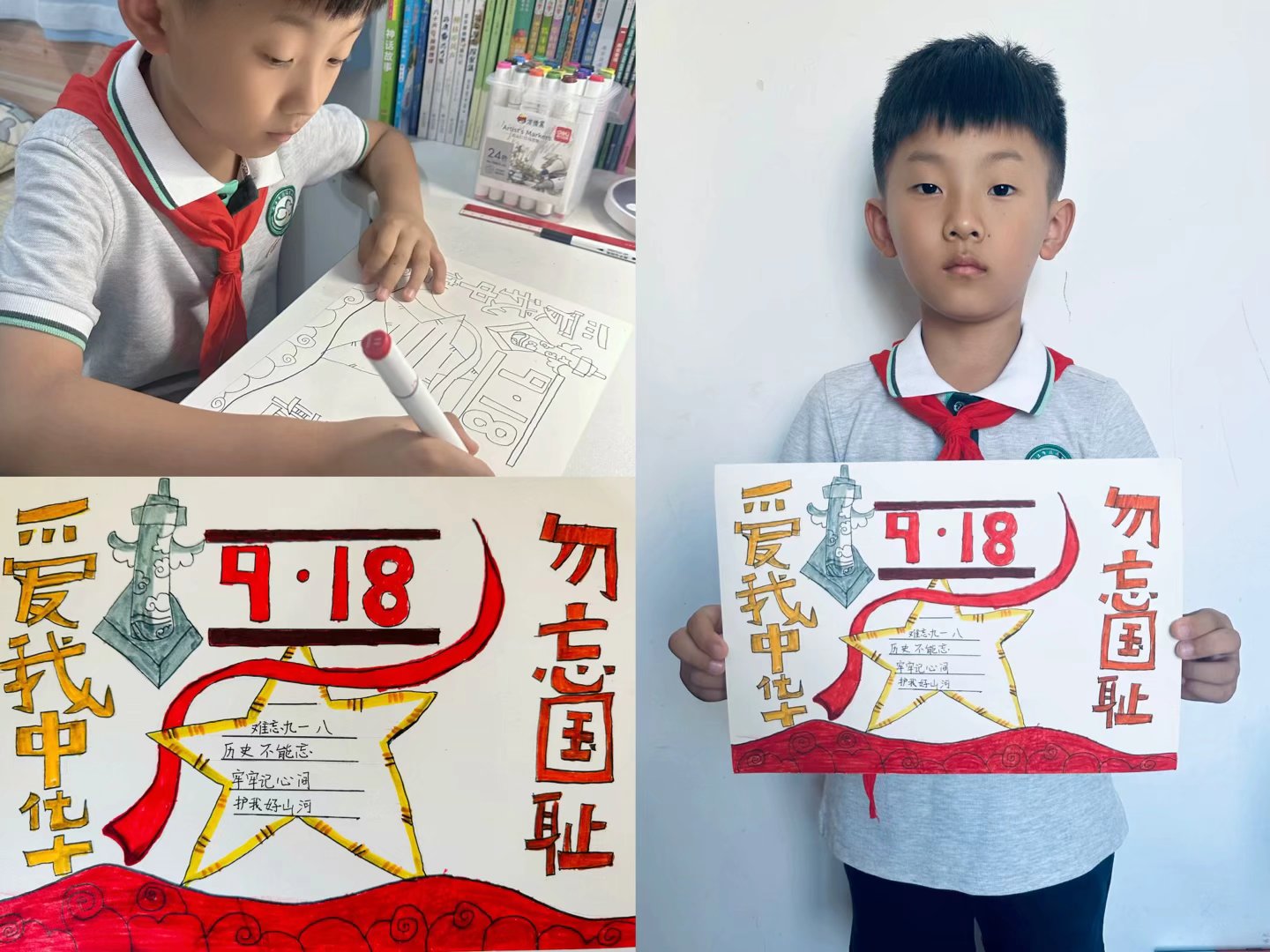 少先队员们精心设计了一张张手抄报,工整的字迹、优美的板面、精巧的构思,无不彰显着他们的用心。有的队员介绍了“九一八事变”的由来,有的队员揭露了日军的暴行,有的队员缅怀了先烈的事迹,一字一沉思,一图一回眸,这些都透露着少先队员们内心对历史的敬畏和对和平的珍惜。