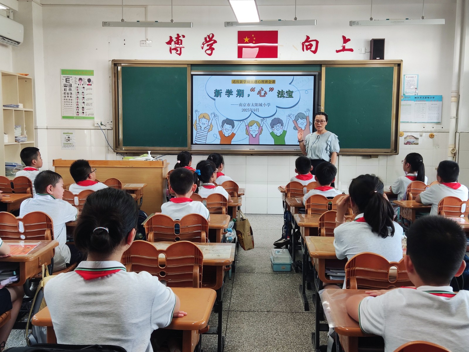 为帮助学生快速适应新学期学习生活,缓解“节后综合征”,南京市太阳城小学以“新学期,‘心’法宝”为主题,在开学第一周开展系列适应期心理课,用科学方法为学生心理健康赋能。