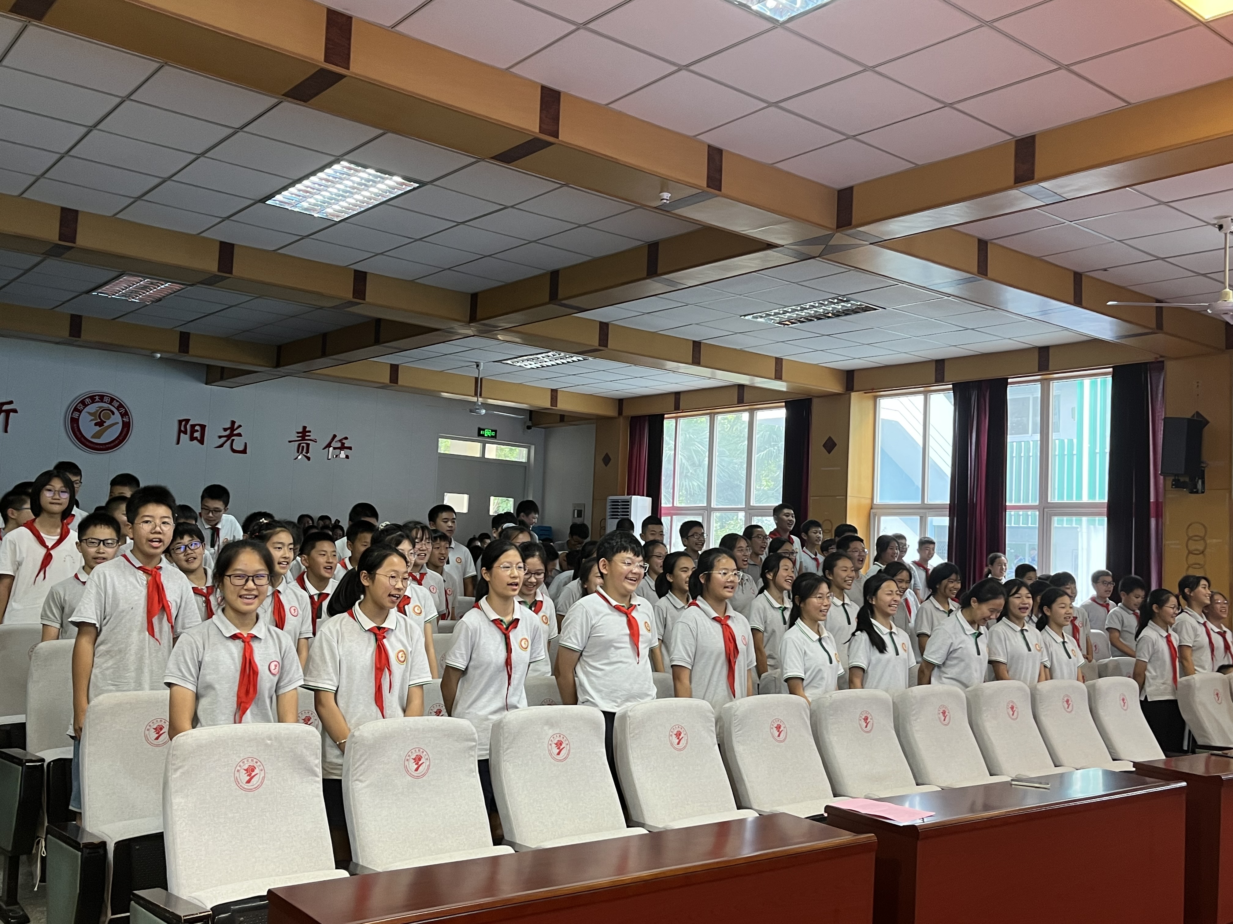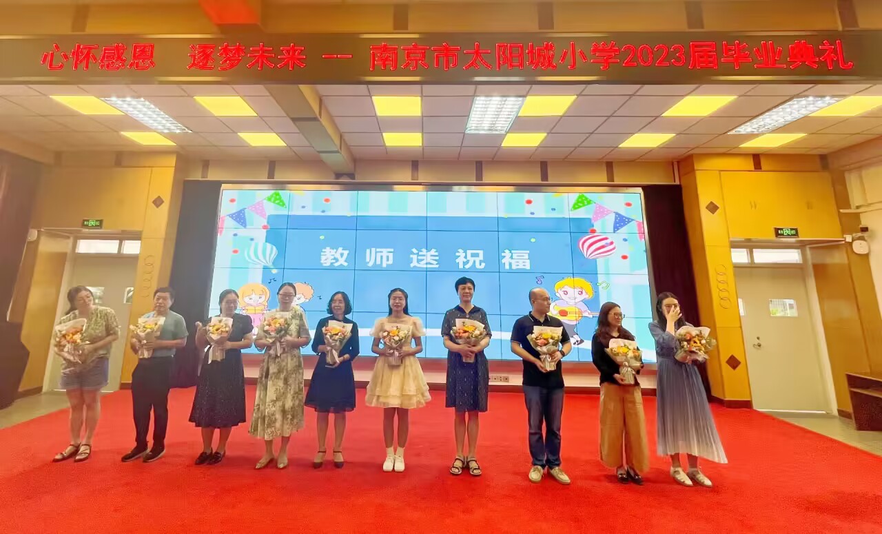 从懵懂的孩子到多才多艺的少年,同学们在太阳城慢慢地成长、成才,他们的每一点进步都倾注了老师无数的心血。在临别之际,老师们为孩子们送上了真诚的祝福,愿孩子们在今后的人生道路上走得更高,飞得更远!全体六年级同学起立,真诚地向老师说:“老师,您辛苦了!”