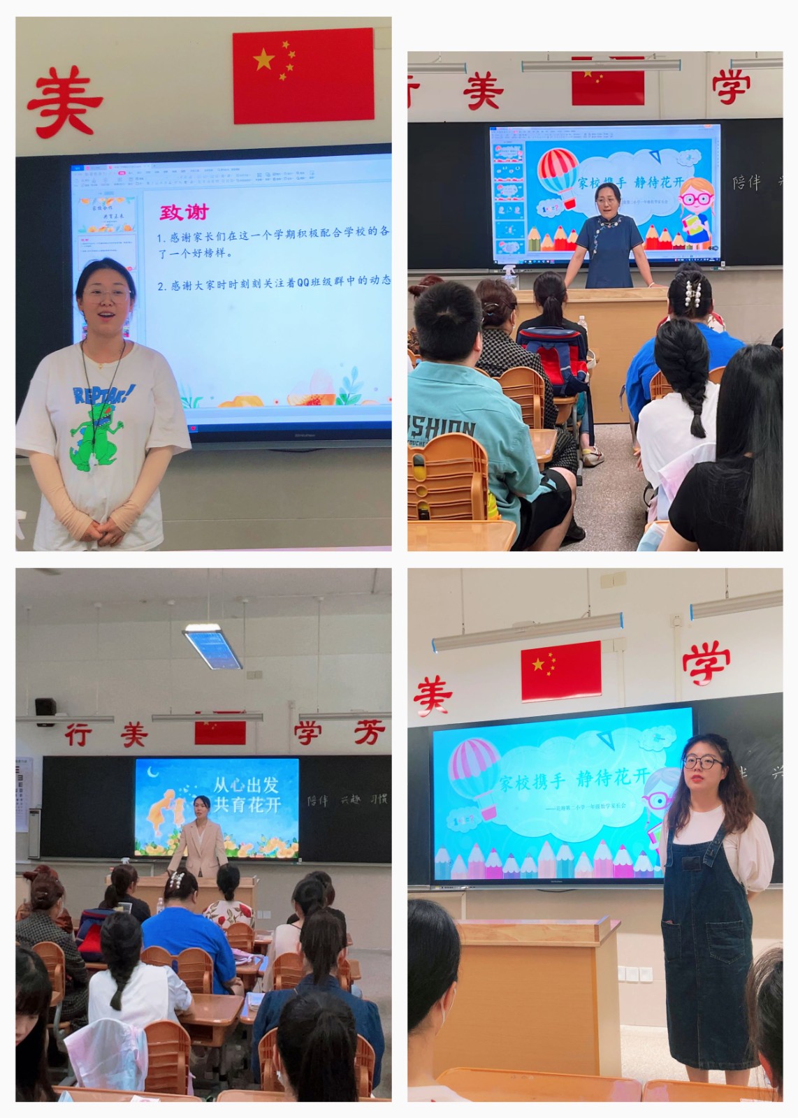 随后,一年级学生家长们回到各个班级进行了与“科任教师”零距离的交流。丰叶老师作为一(1)班班主任,她向家长介绍了本班特色,分享近期学生的学习生活情况,并对下一阶段的学习要求作了详细说明。副班主任邵双玲老师结合学生的身心特点,强调学生习惯养成的重要性。语文印藕玲老师和数学曹璐文老师对班级各科学习情况进行了分析,同时结合自己的专业教育教学知识与家长分享了高效的学习方法。参加的家长纷纷表示,接下来将加强督促,共同助力孩子的健康成长。刘哲蔚老师作为一(2)班班主任,她立足班情,从一日常规、学习情况、班级事务等方面展开, 向家长介绍学生在校学习现状和取得的进步,同时也对目前学生存在的问题进行认真分析,与家长共同探讨解决问题的方法。李玲校长身为一(2)班的数学老师,不仅给每个孩子给予了全面的评价,而且还根据学科特点和学习要求,向家长们展示了孩子们阶段学习成果。同时还根据部分学生存在的一些问题进行了交流探讨。