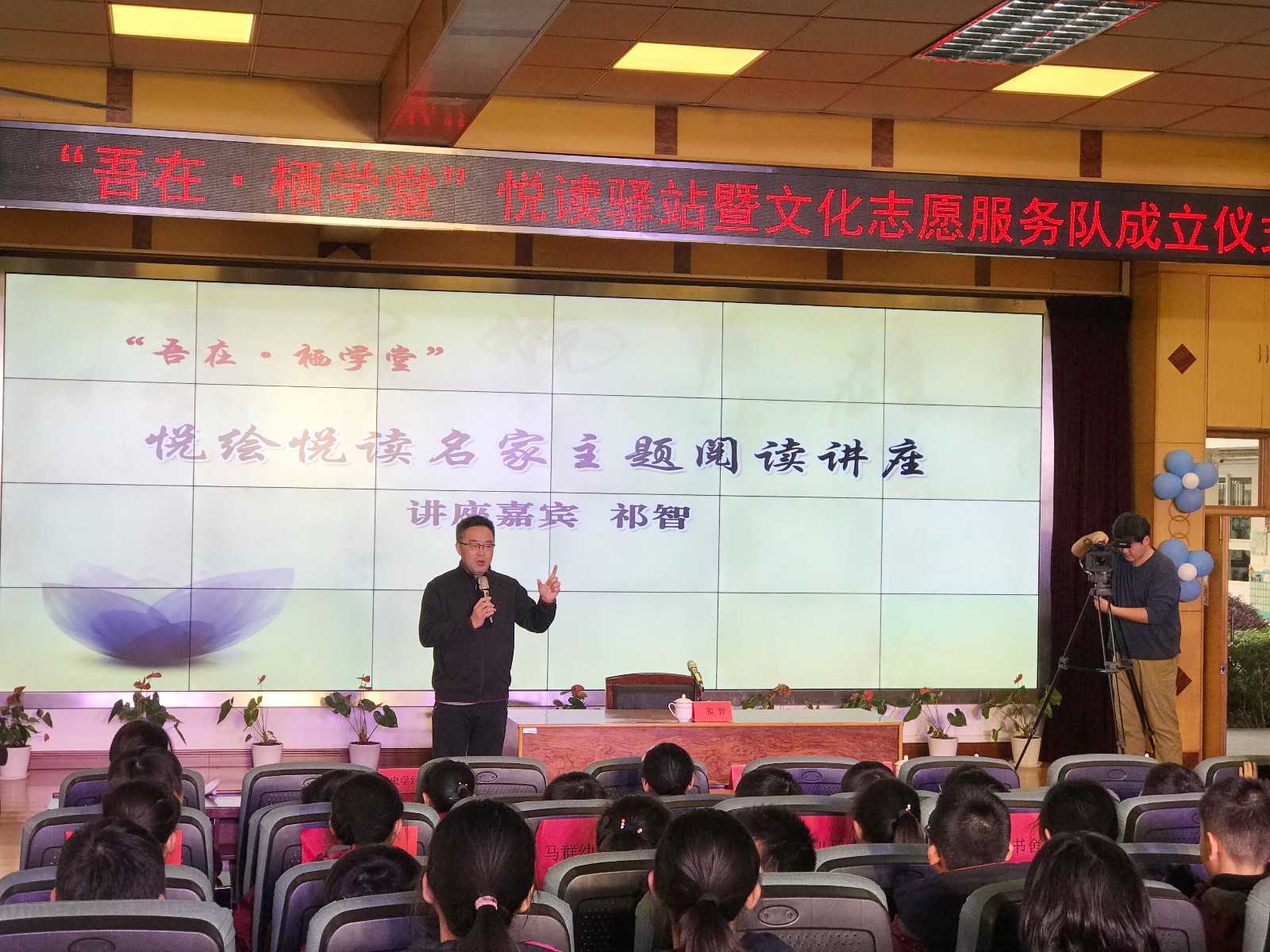 12月25日下午,太阳城小学的阶梯教室里不断传来孩子们的阵阵欢笑声,原来舞台上迎来了一位和蔼可亲的作家——祁智叔叔。
