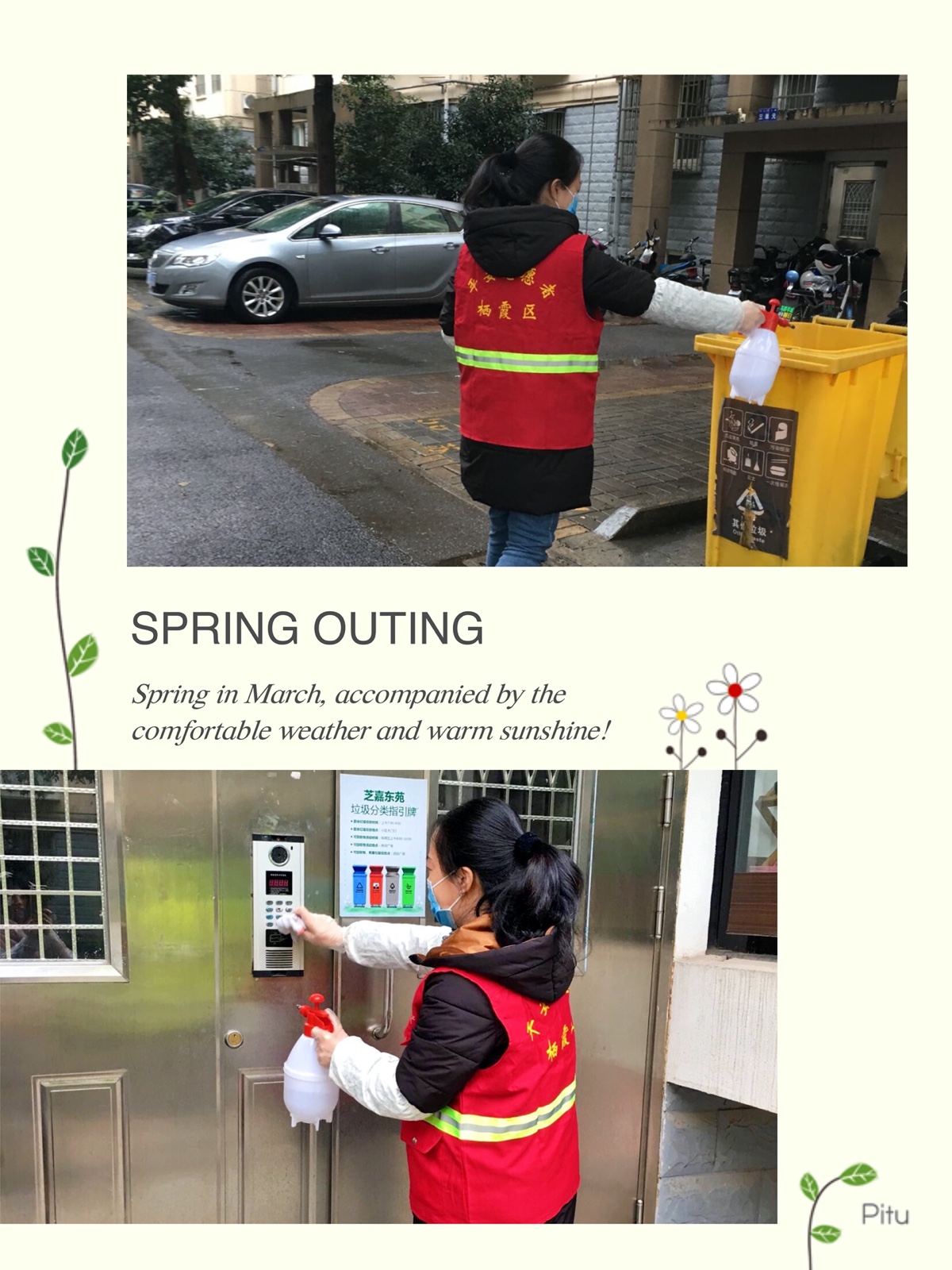 除了这些,妈妈还要组织小区保洁员进行楼道、地下室、卫生死角以及其它公共区域的环境卫生和消毒工作。大“疫”当前,仍有一些居民对疫情不够重视,依旧不戴口罩、扎堆聊天,妈妈就要对这些居民进行耐心劝说,宣传疫情的危害性和防疫的重要性,让大家增强自我防范意识。