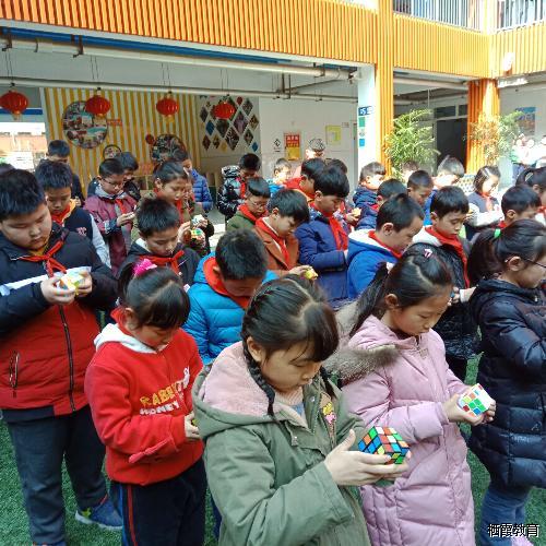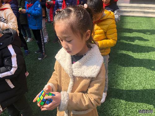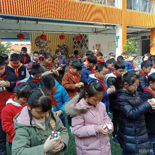 伴随着广播里动感的音乐,班级的三阶魔方PK赛在班主任老师的组织下开始了!同学们飞快转动着手里的魔方,魔方的“嚓嚓”声和音乐交汇成特别的旋律,激励着同学们更专注、更自信。一面复原、T字形、两面复原……不一会儿,每个班就选出了2名三阶魔方速拧小达人。