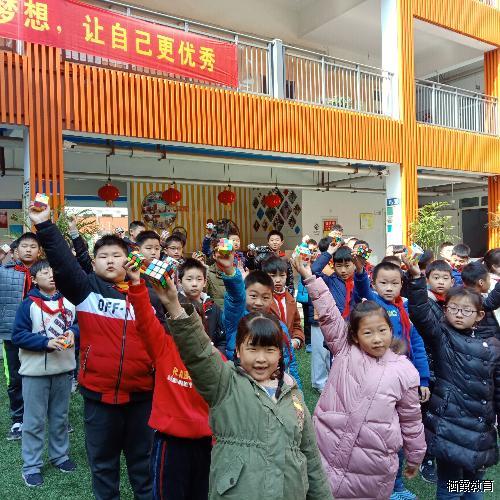 第二节下课铃声刚响起,南湾营小学校园里就洋溢着节日般的欢乐气息,哦!原来是“魔幻大课间”如约而来。瞧,孩子们早就准备好魔方,准备在接下来的PK中一展身手呢!