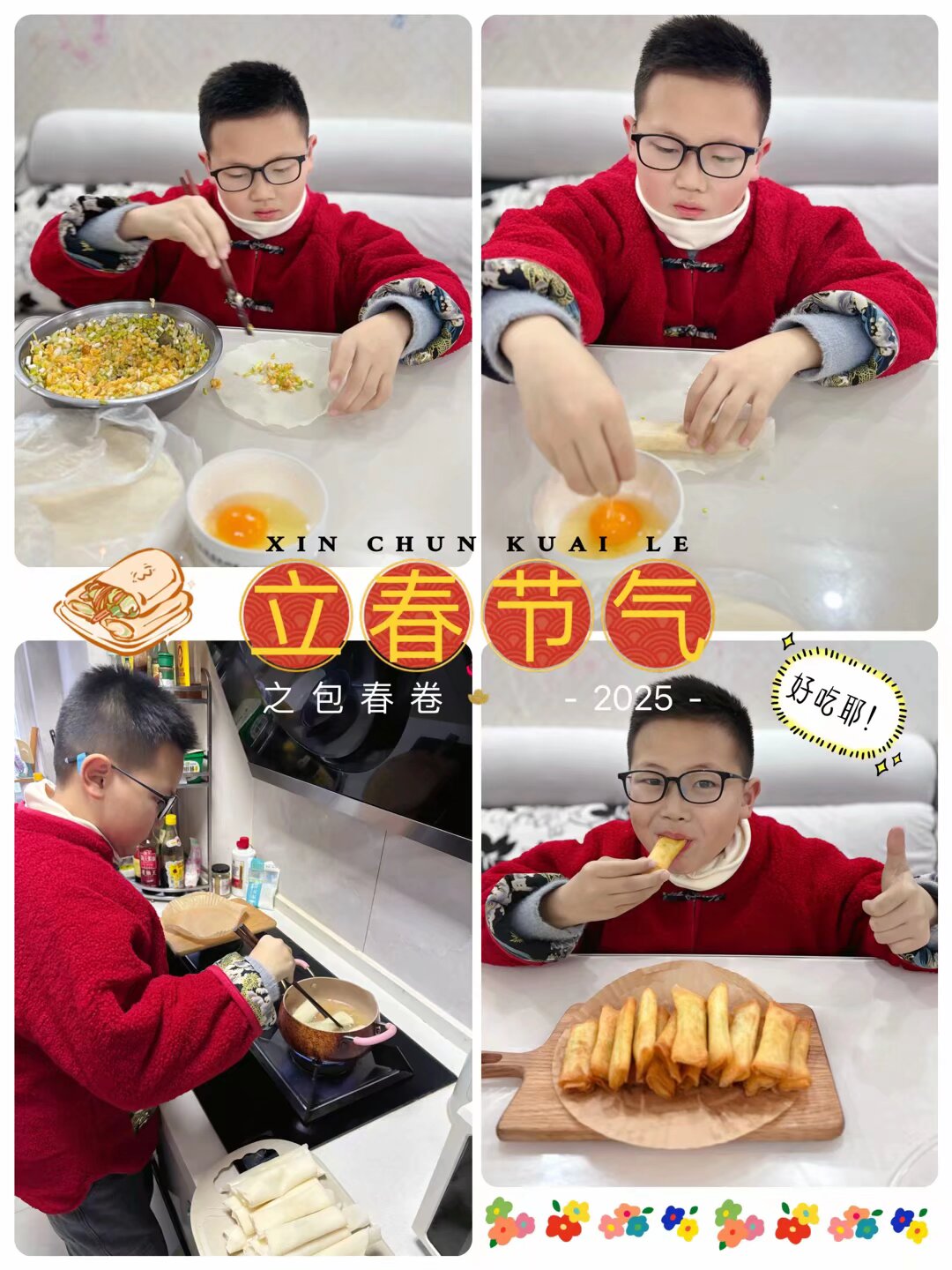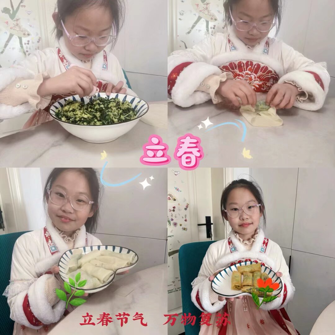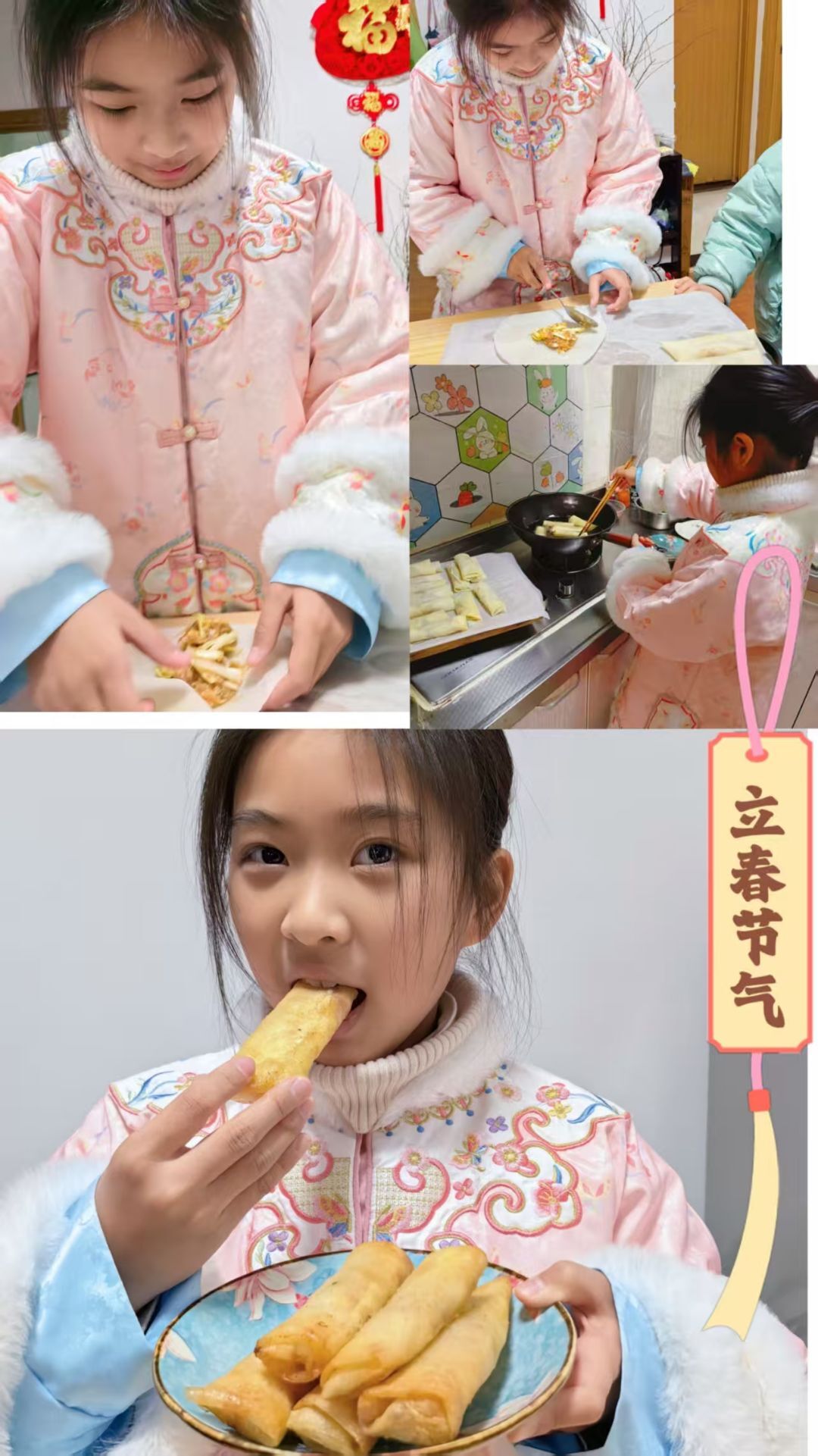 “律回岁晚冰霜少,春到人间草木知。”立春是二十四节气之首,民间有迎春、咬春、打春等习俗,在传统观念中,立春具有吉祥的涵义,意味着万物复苏、万象更新,代表着生机与希望。2025年2月3日,一场别开生面的春卷制作活动热烈开展,南京市花港第二小学四(2)班的学生们在传统美食中品味节气文化的悠长韵味。