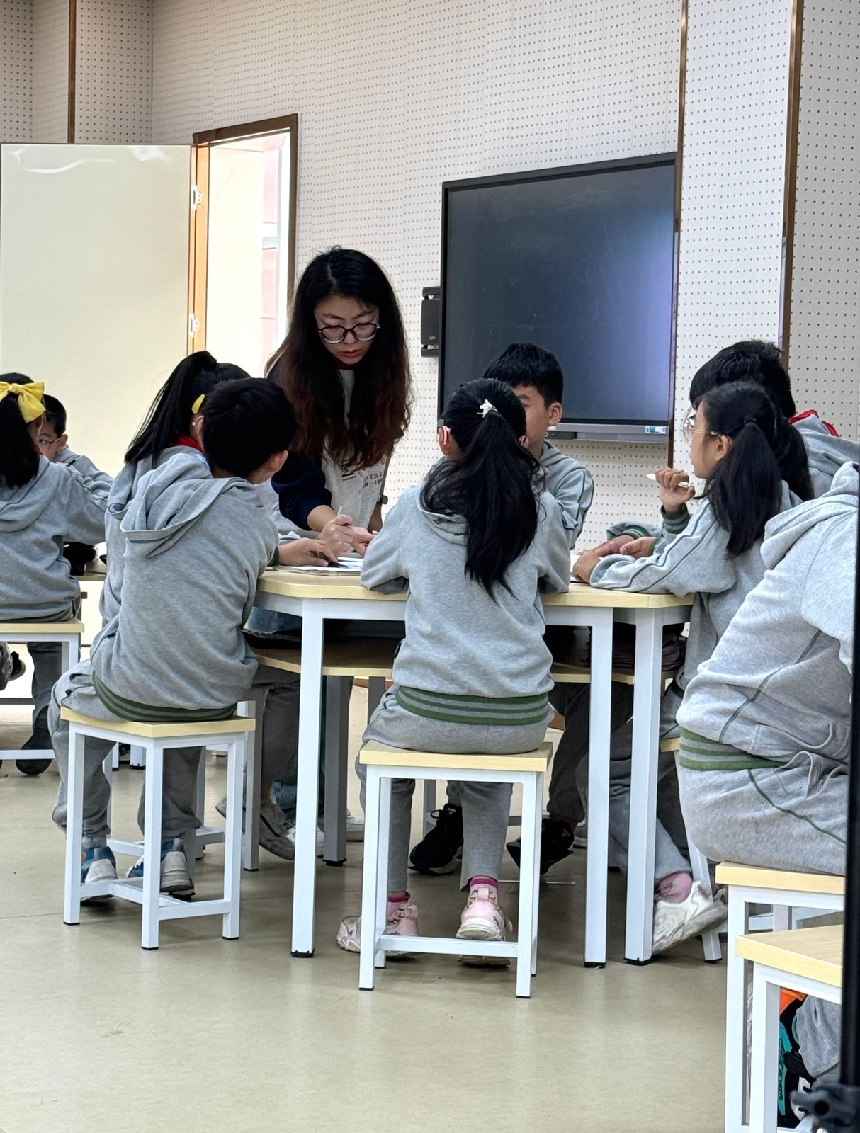 课后,听课教师们对本节课进行了研讨。老师们肯定了曹老师在教学设计上的层次性,抓住以往的知识经验进行本节课的教学,由易到难,内容丰富,学生对知识掌握很到位。同时,老师们也提出了自己的宝贵意见,可以在新知授课环节更紧凑一些,给练习节省一些时间,PPT的语言可以更精简一些,在板书上可以将两块黑板利用起来,更合理利用。