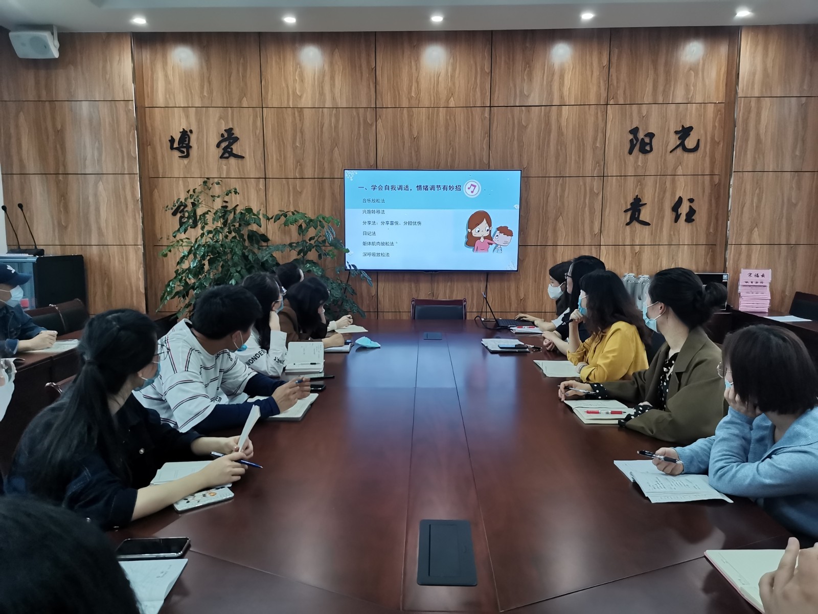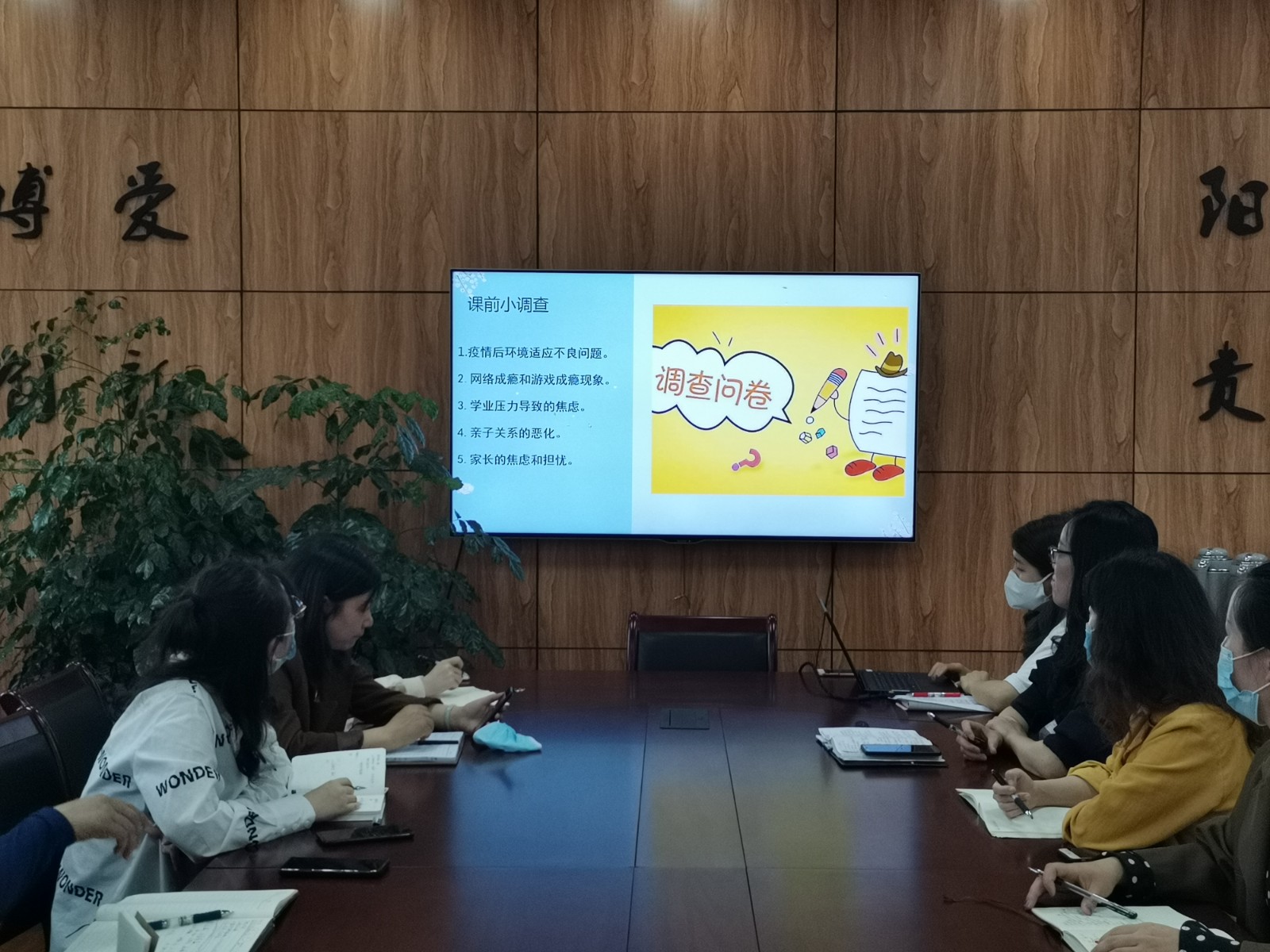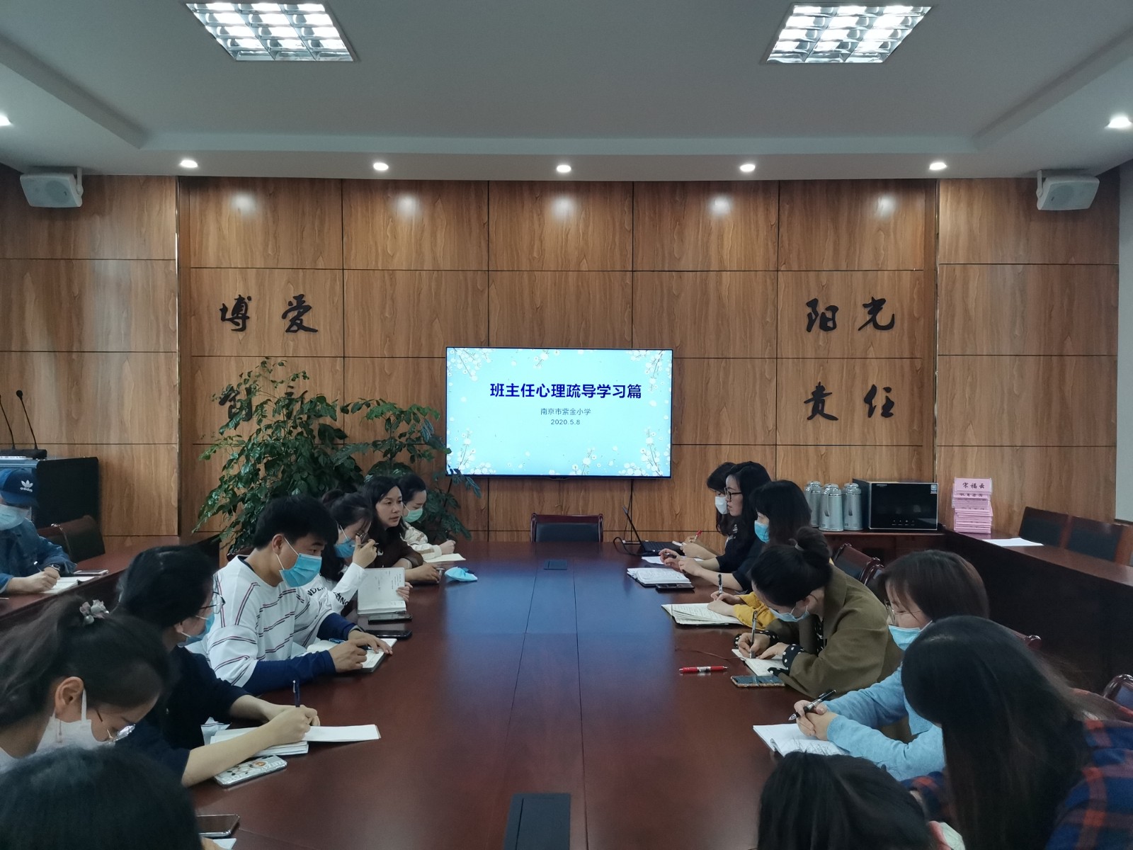 5月8日下午,在紫金小学王校长王校长及德育处代老师的组织下,学校全体班主任老师及其他任课老师齐聚大会议室,共同参加了紫金小学班主任对全体小学生心理辅导的培训。在培训会上,王校长首先对学生心理健康问题表达了高度的关注,并要求全体教师要以一颗积极阳光的心态来对待学生,用心关爱每一个孩子的身心健康,以确保孩子们能顺利展开全面复学复课。随后,代老师则通过ppt对各位班主任及任课老师进行培训。代老师为大家讲述了一系列可以操作的物理治疗方法及心理健康疏导指引,这让大家收获满满。