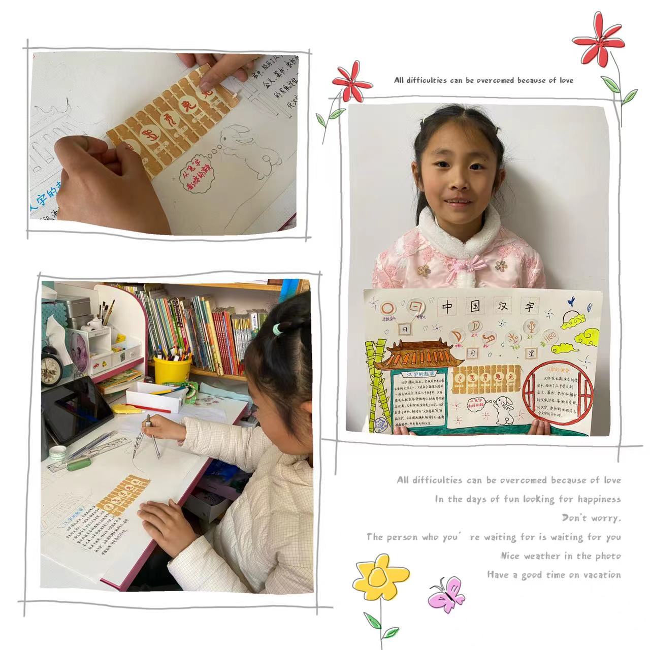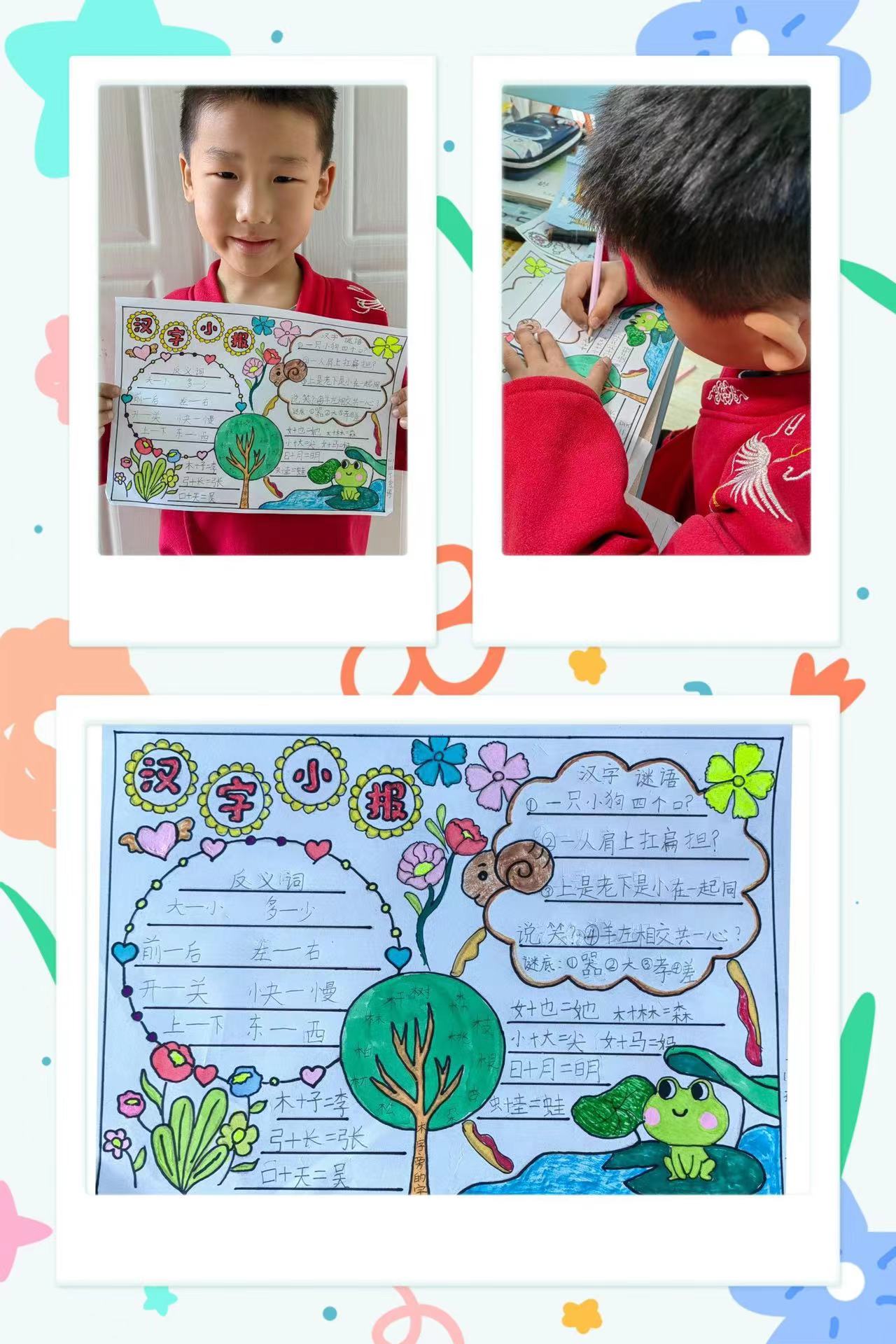 为了能让孩子们深深的陶醉于中国汉字之美,鼓励孩子们在平时的生活中做一个有心人,引导低年级孩子们主动认识生字,激发他们识字兴趣,拓宽识字渠道,一年级开展了汉字小报制作活动,让孩子们在生活中寻找汉字的美,用眼睛去发现汉字的美,用头脑去领悟汉字的美,用心灵去感受汉字的美。