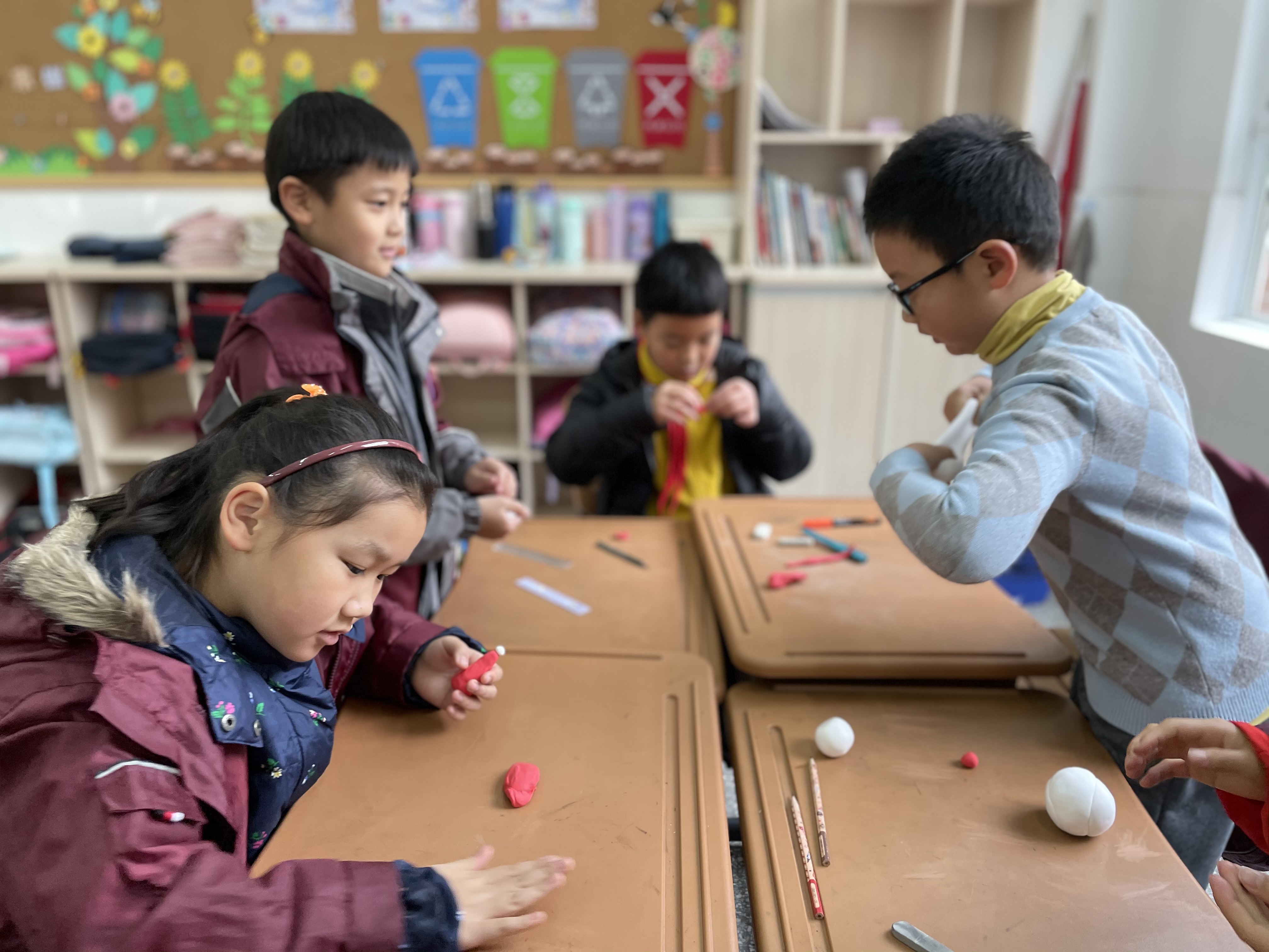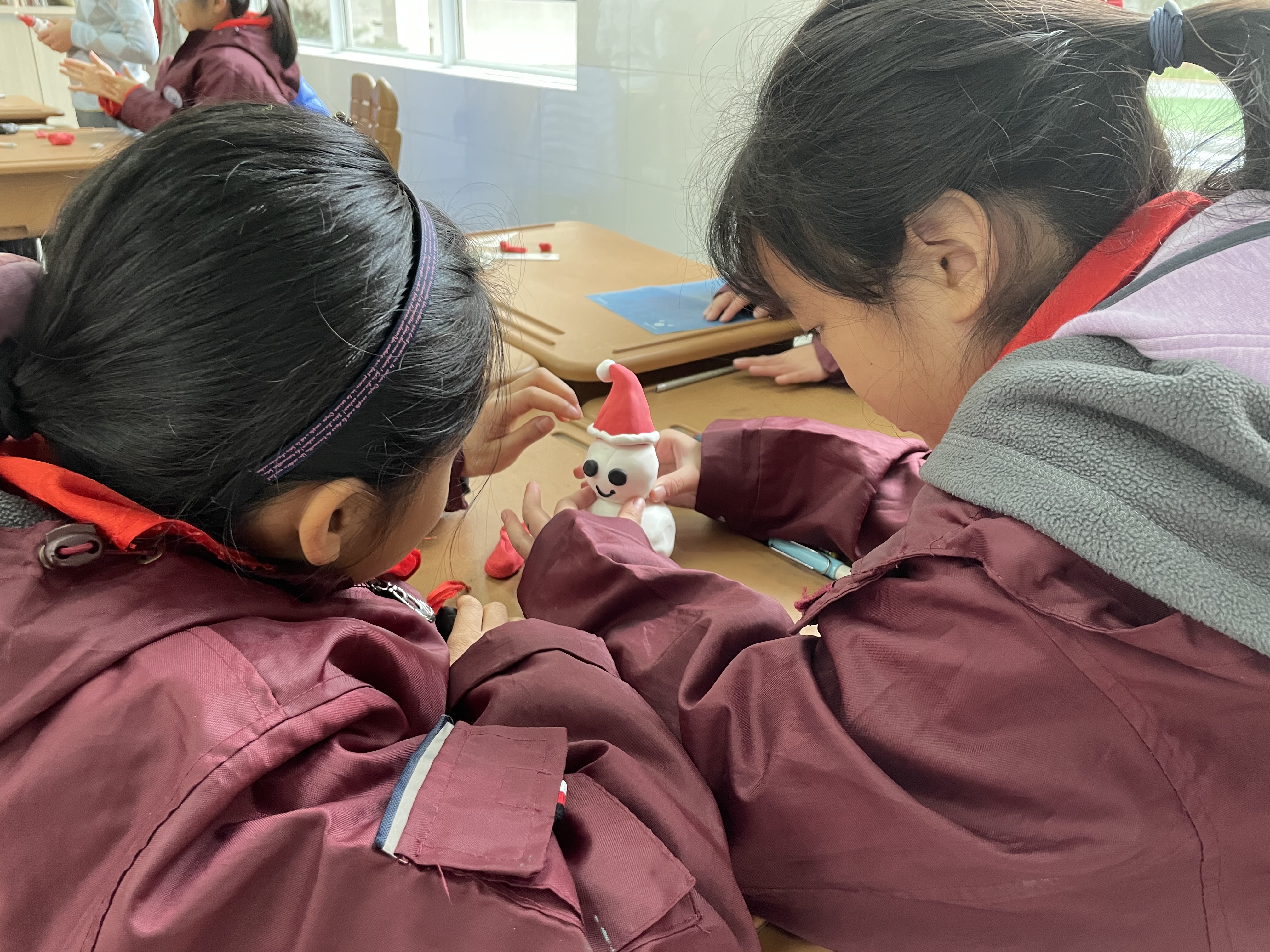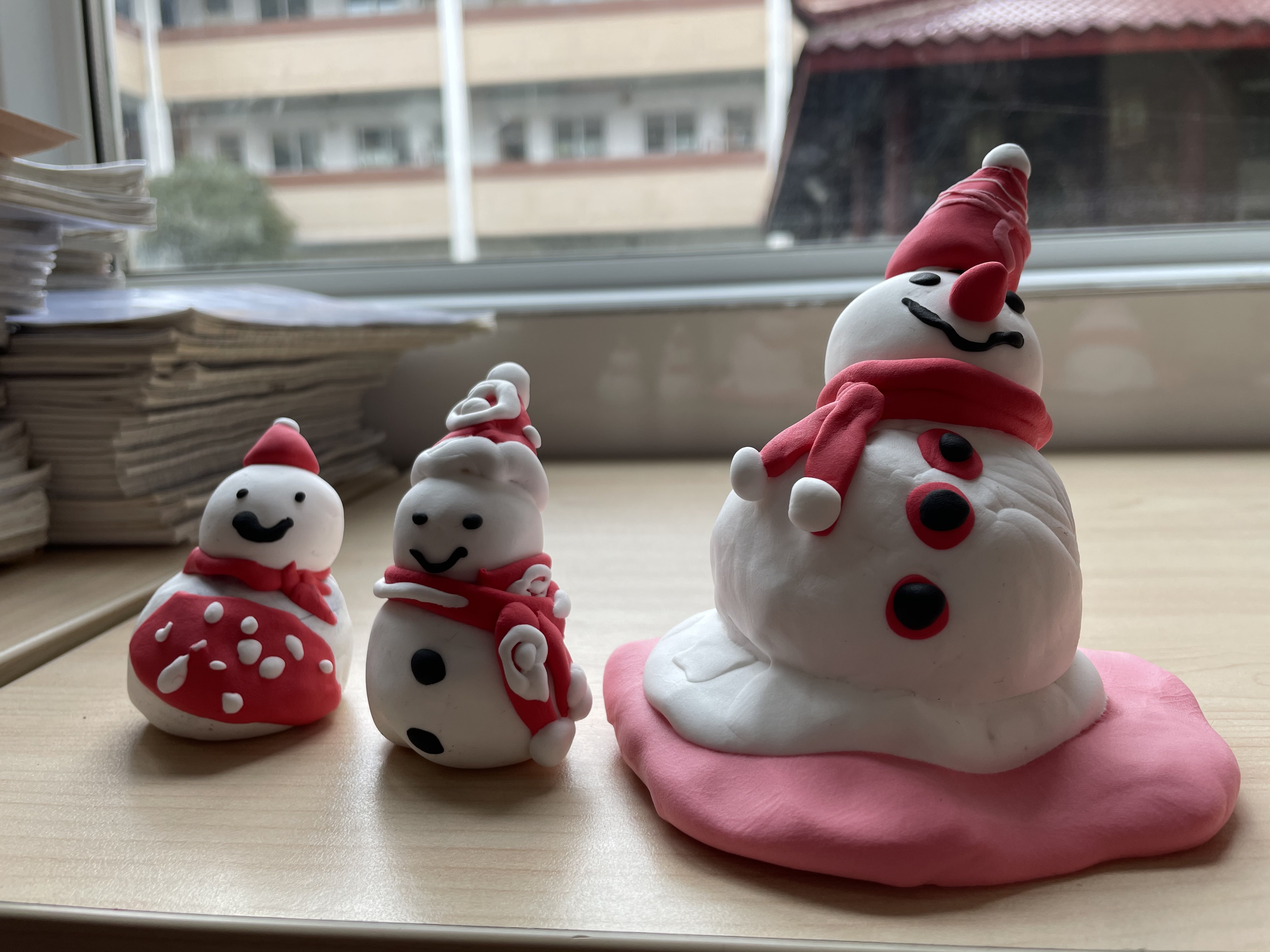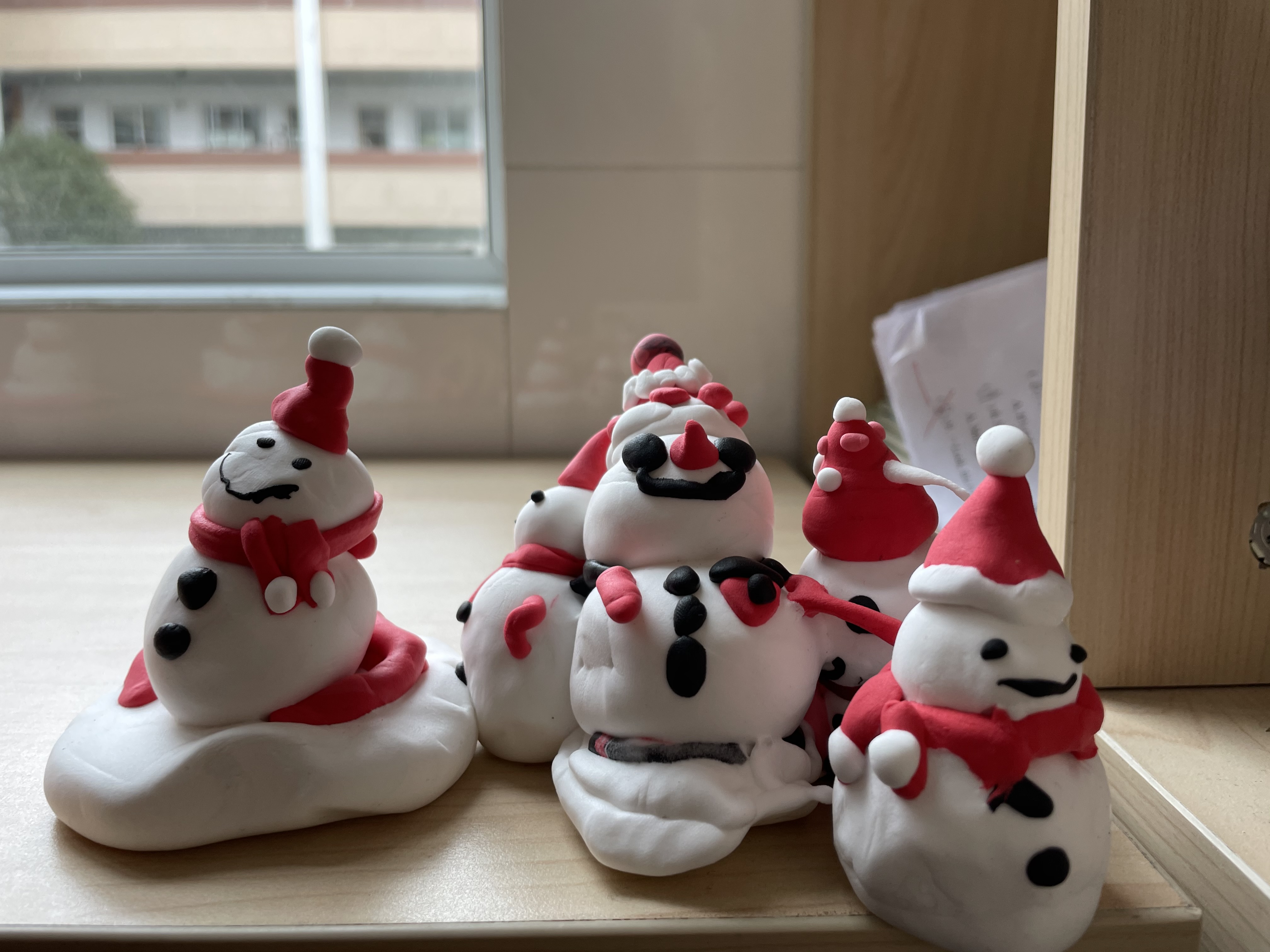 胖嘟嘟萌萌哒的雪人是冬天的代言人,老师带着谷雨班的孩子们制作小雪人,用柔软又蓬松的超轻粘土作为堆积的雪,用手掌捏出雪人的轮廓,再制作出围巾和帽子,最后一个个可爱的小雪人就诞生啦!