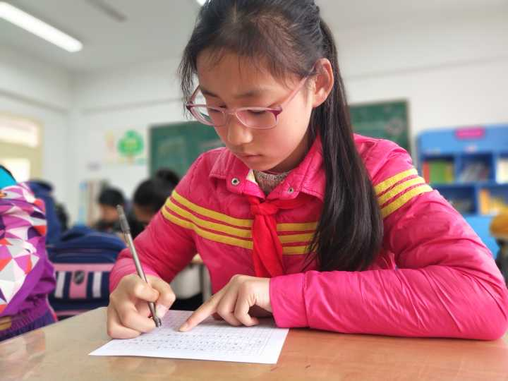“刷刷刷”,比赛现场异常安静,只听得一片笔尖与洁白的稿纸摩擦的声音,这是六年级同学们写作思路的展现。现场写作时间只有一个小时,同学们是否为此有压力?是否能顺利成文呢?看!这位学生开头写道:“一位先生拿起一支毛笔,点些墨水,在泛黄的宣纸上写出令中国人骄傲的汉字”,开头对汉字的自豪之情就溢于言表。再看她,一个题目《字缘》,就足以吸引了大家目光,这位小作者肯定和汉字邂逅过一段难以忘怀的缘分。 “汉字像一个个可爱的精灵,带给我快乐;像一滴滴晶莹剔透的小水珠,令人赏心悦目。像一朵朵正在怒放的鲜花,惹人赞叹……”这样的排比句式完全表达出了小作者对汉字的喜爱之情。像这样才华横溢的小作者还有很多很多,仅是读读开头,就会让人预感到将有一场文学的饕餮盛宴正在悄然进行。