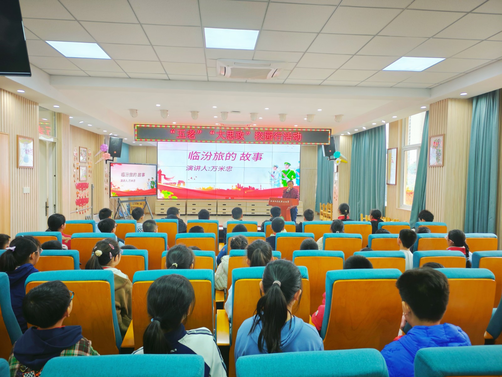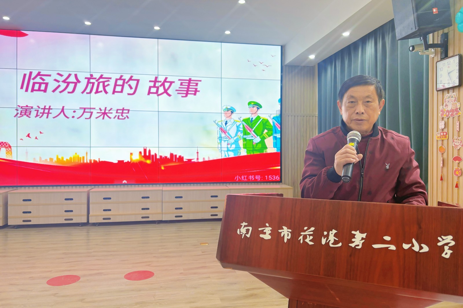 来自太阳城小学的万米忠老师给我校五年级全体同学讲了临汾旅光荣革命故事。活动现场,多媒体大屏上展示着珍贵的历史影像与战斗场景,同学们个个目不转睛、聚精会神。万老师生动讲述“临汾旅”,从抗战烽火到解放战争的硝烟,再到建国后的保家卫国行动,其辉煌历程如在眼前。通过五个关键历史片段,“猛、狠、拼、犟”的攻坚精神,深深触动着孩子们,引得全场阵阵掌声。