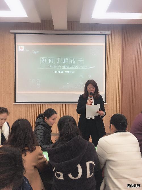 接着,关老师从不同的年龄阶段让家长们了解了孩子的身心发育、认知发展以及心理社会发展的规律。孩子的生理发展主要是身体和脑发育,在孩子很小的时候就要特别注重孩子的感觉能力、运动技能的培养,这样会在他的成长之路上埋下优良的种子。认知发展存在于孩子的学习、注意力、记忆、思维、推理以及创造性表现出来的智力变化。心理社会发展对于孩子来说格外的重要,涉及到情绪、人格的变化。关老师联系以往课堂中讲到的情绪管理,让大家明白了要积极面对和接纳孩子的各种情绪,帮助孩子排忧解难,建立健全的人格。