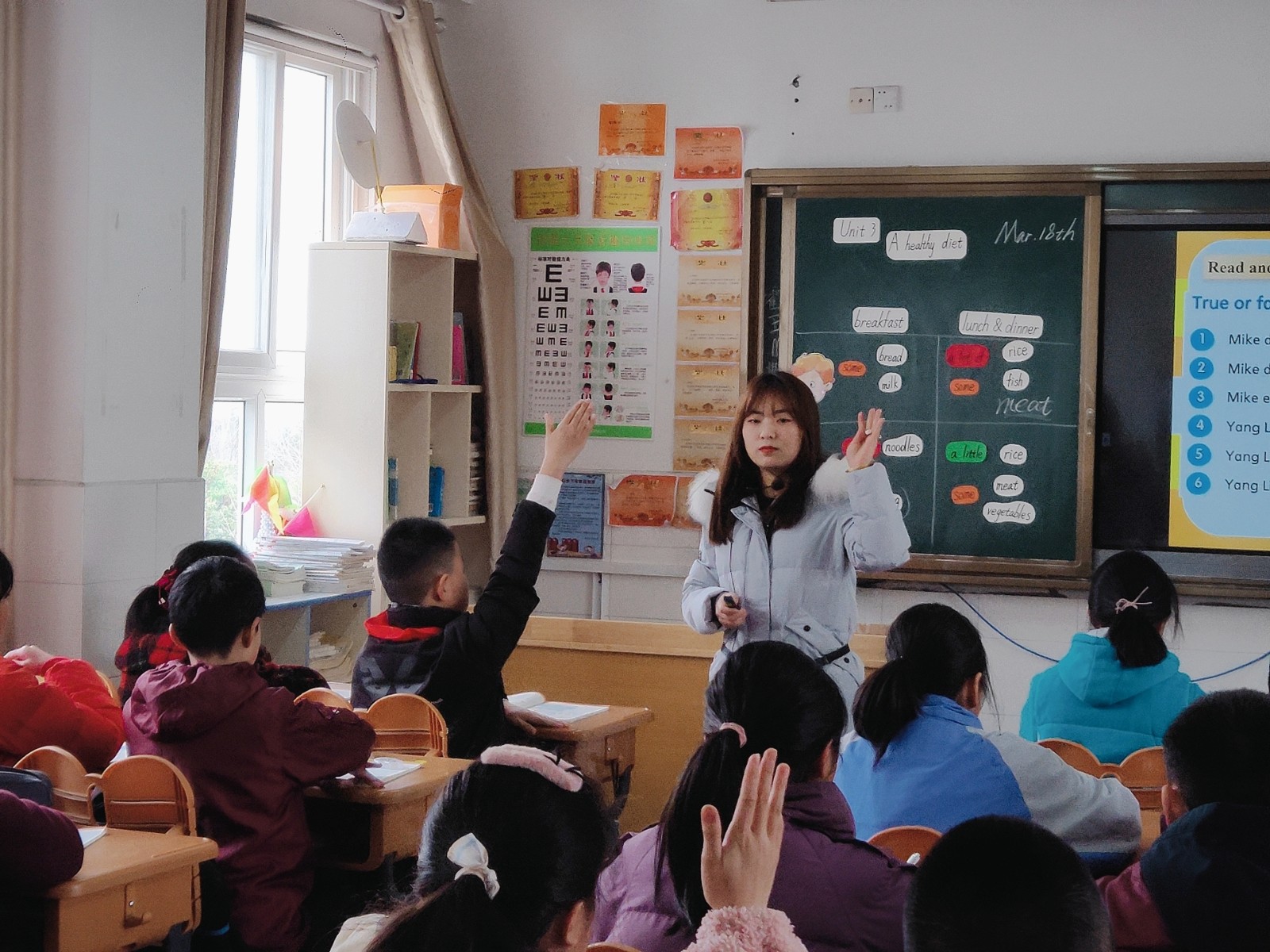 3月18日下午,我校英语组骨干教师侯孟寒老师,在经过演课、试上多次打磨,结合了组内其他教师的建议,最终在六年级4班呈现了一堂精彩的阳光课堂展示课。