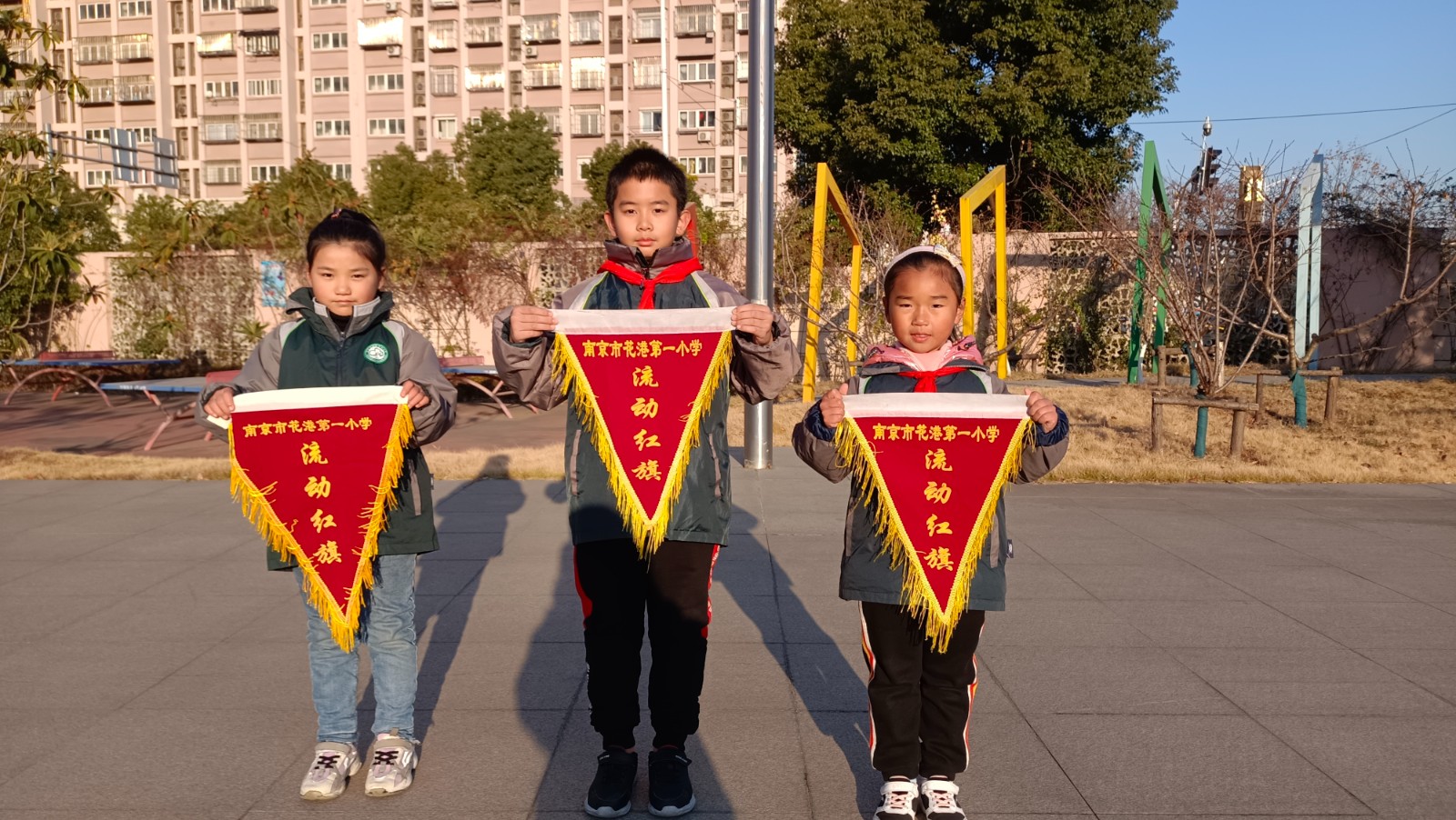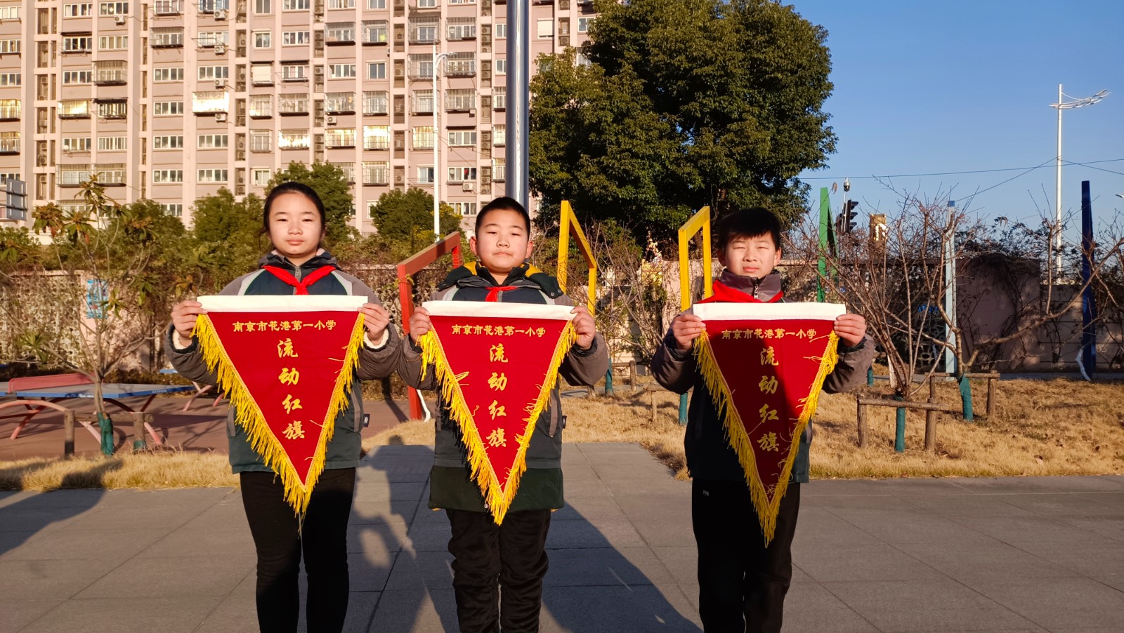 冬日的暖阳里,风依旧带着丝丝寒冷。2021年12月27日升旗仪式结束后,副大队长孙昊天公布了上一周文明班级获奖情况。