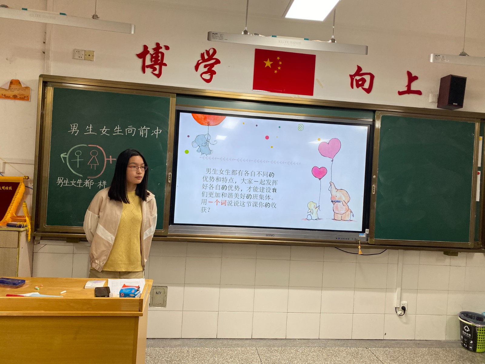 课堂上,志愿者们用有趣的小游戏让学生交换座位,选择自己喜欢的位置自由落座,在课堂上畅所欲言。用辩论赛的形式分别陈述了男生、女生各自的优点和缺点,优势和短板,让学生对男生、女生有了客观、正确的认知。最后,让学生在卡片上对自己最钦佩的男生或女生写下自己想对他或她说的话。