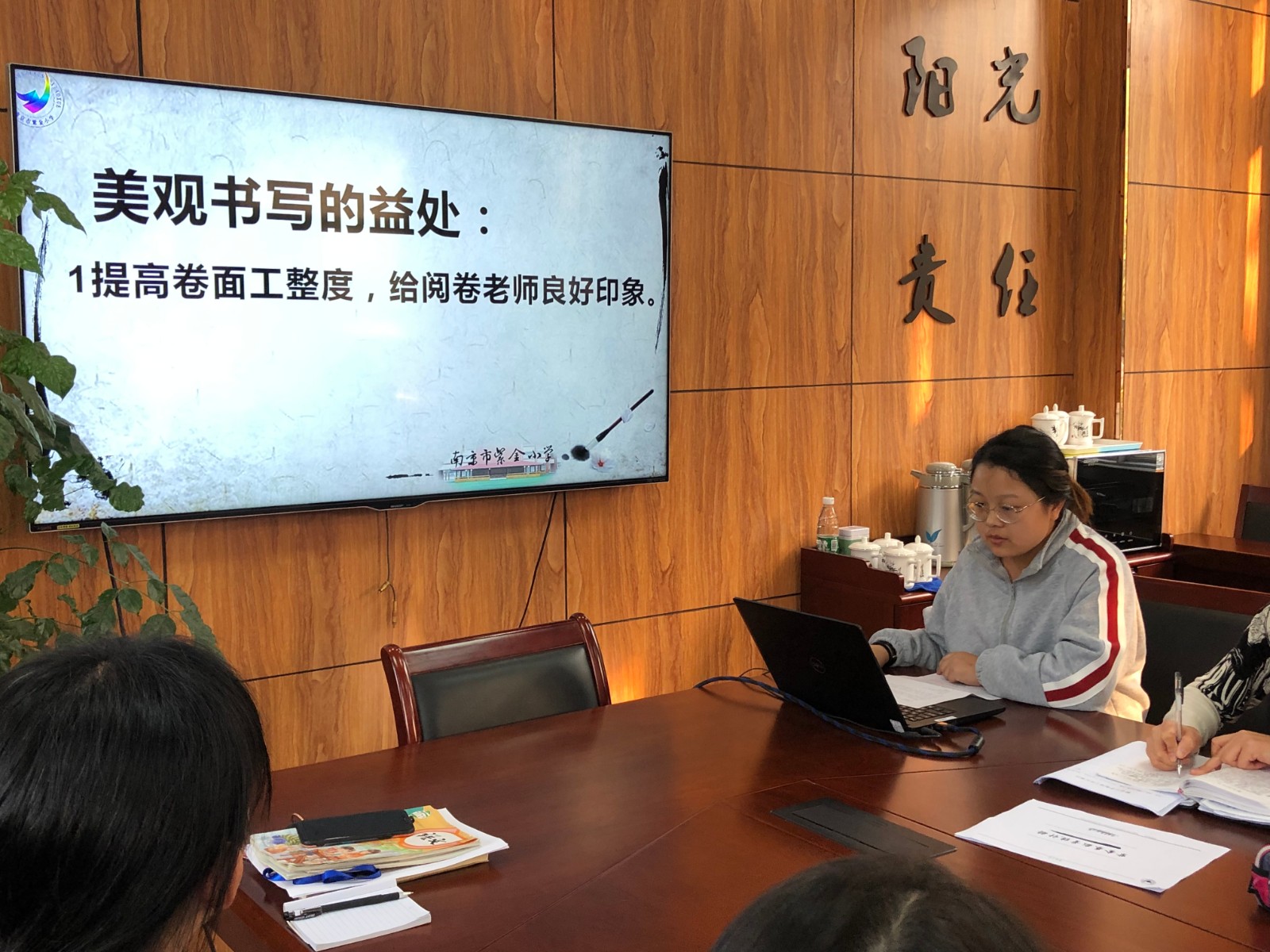 会前,语数英三科的鲁老师、季老师和臧老师充分准备,针对本学科作业的书写特点进行了思考,总结出了一些能够促进提升学生书写质量的经验。